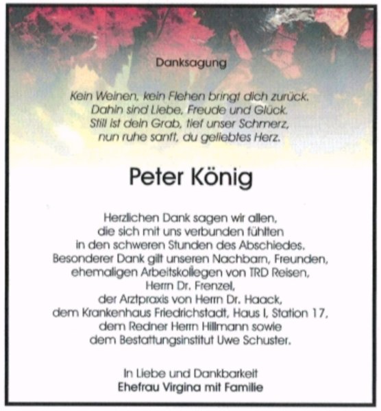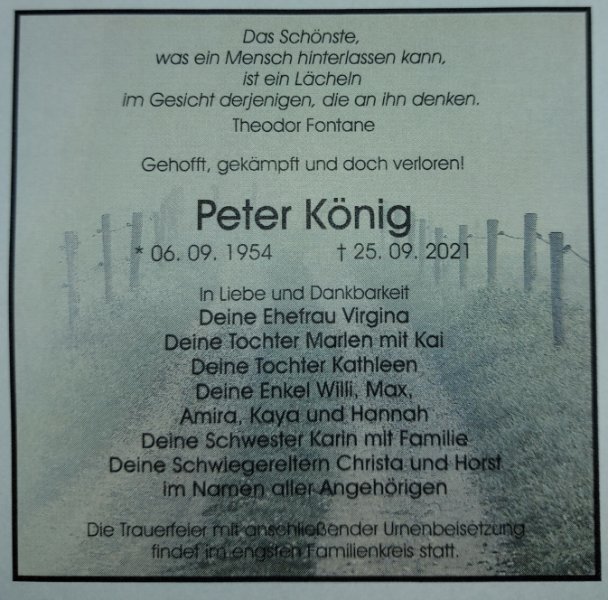 Peter Königgestorben am 25. September 2021